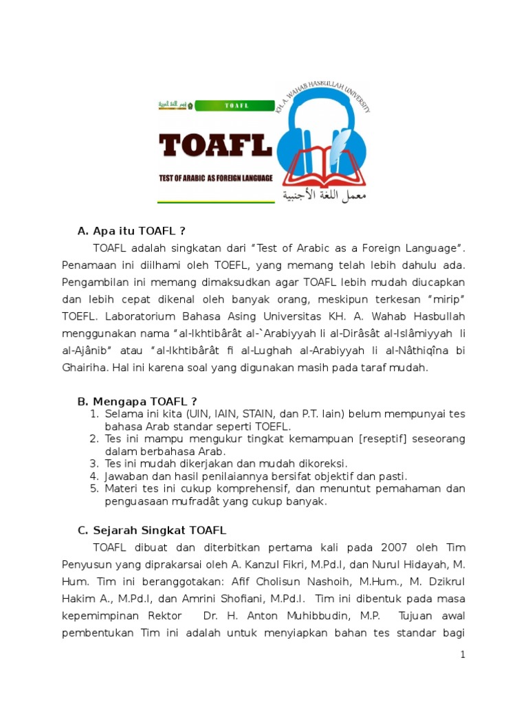 Toafl Resmi Menjadi Hak Cipta Milik Uin Jakarta Pusat Pengembangan Bahasa