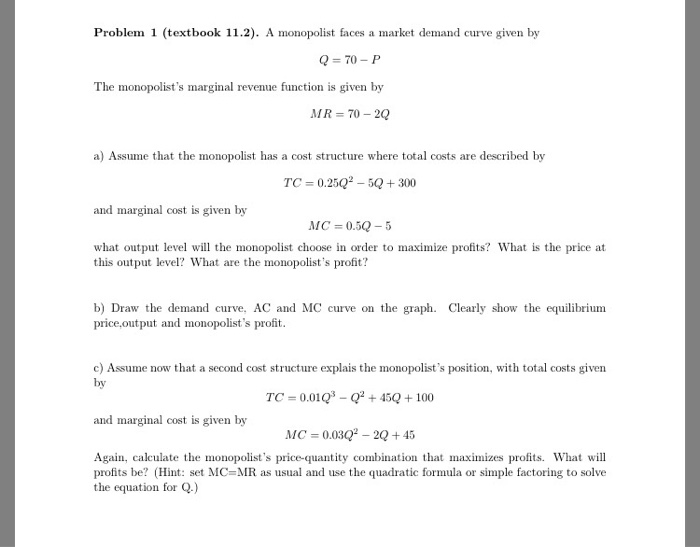 A Monopolist Faces A Market Demand Curve Given By Chegg Com