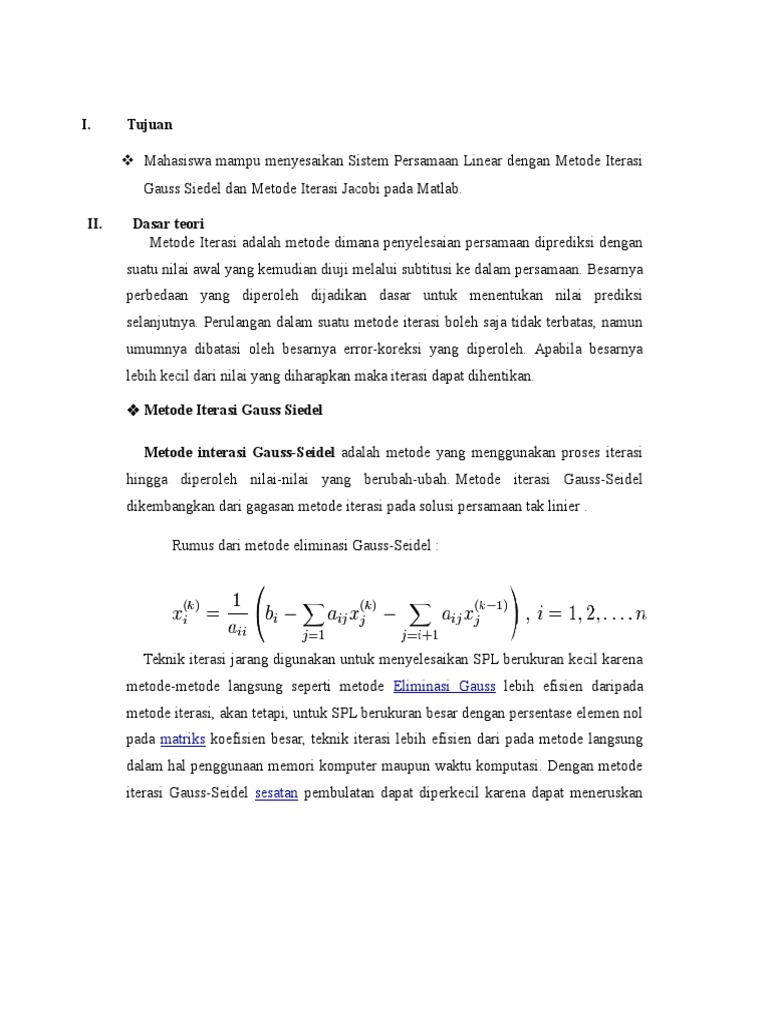 METODE NUMERIK METODE BAGI 2 CARA MENULIS RUMUS MATEMATIKA PADA. Bila diketahui persamaan linier simultan Metode Iterasi Gauss-Seidel Berikan nilai awal dari setiap xi i1 sd n kemudian persamaan linier simultan diatas dituliskan. Metode Gauss-Seidel pada prinsipnya hampir sama dengan metode Jacobi.