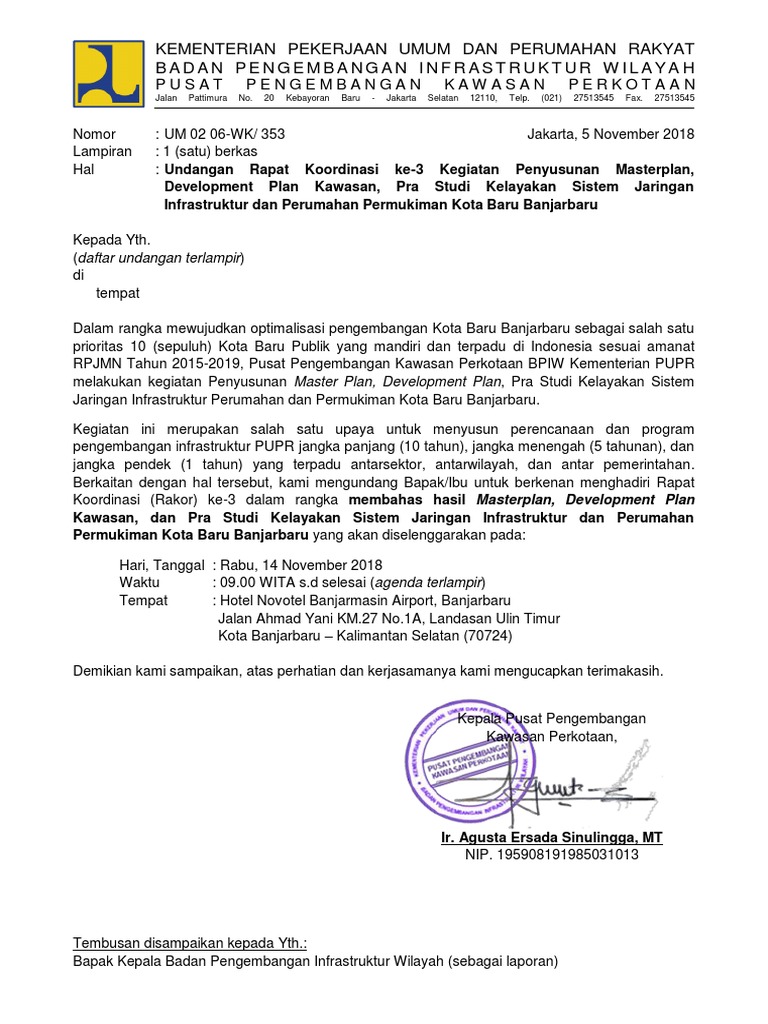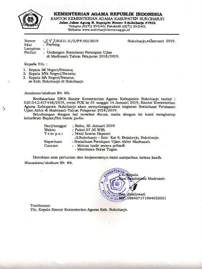 0033SU1KU2009 tanggal 7 Januari 2009 tentang Penyerahan DIPA 2009 yang semula dilaksanakan pada. Surat undangan rapat dinas memang sedikit berbeda dari surat resmi lain. Ibu Dita Rembon SE MHum.
