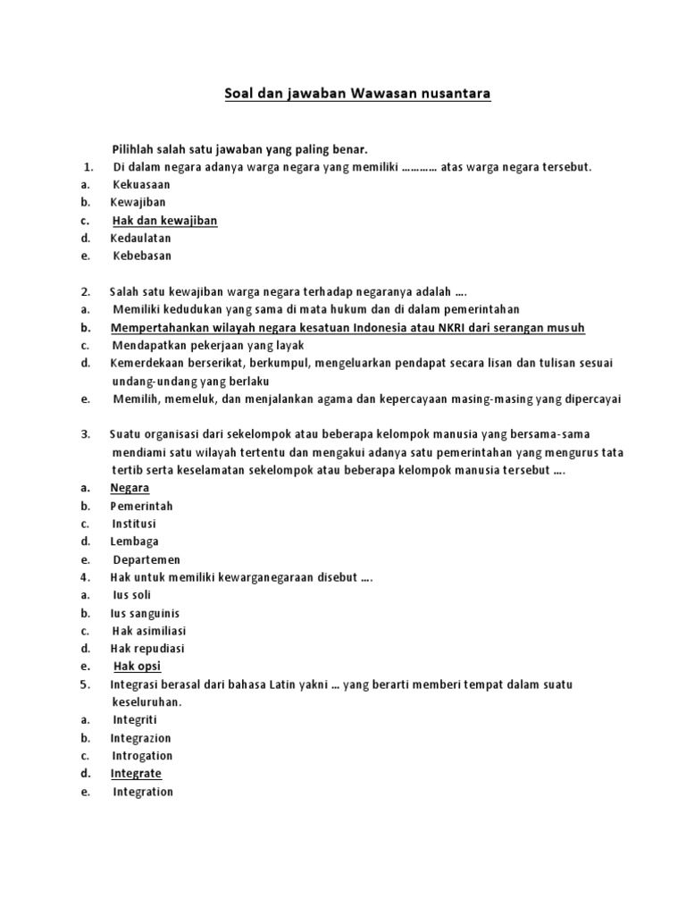 Soal Dan Jawaban Wawasan Nusantara Guru Paud