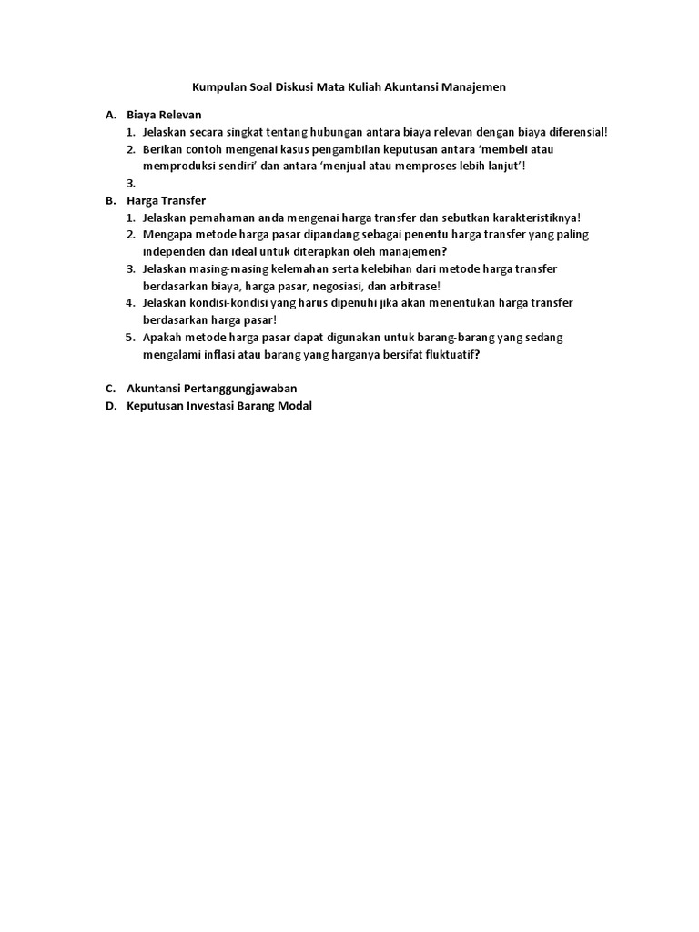 Kumpulan Soal Diskusi Mata Kuliah Akuntansi Manajemen Uas
